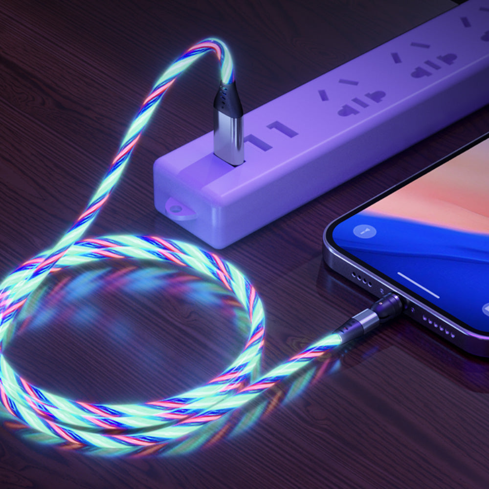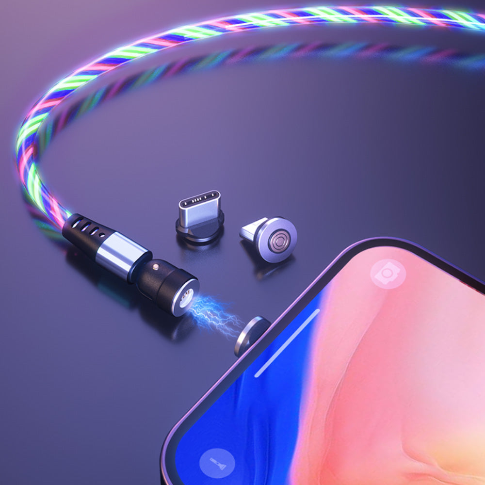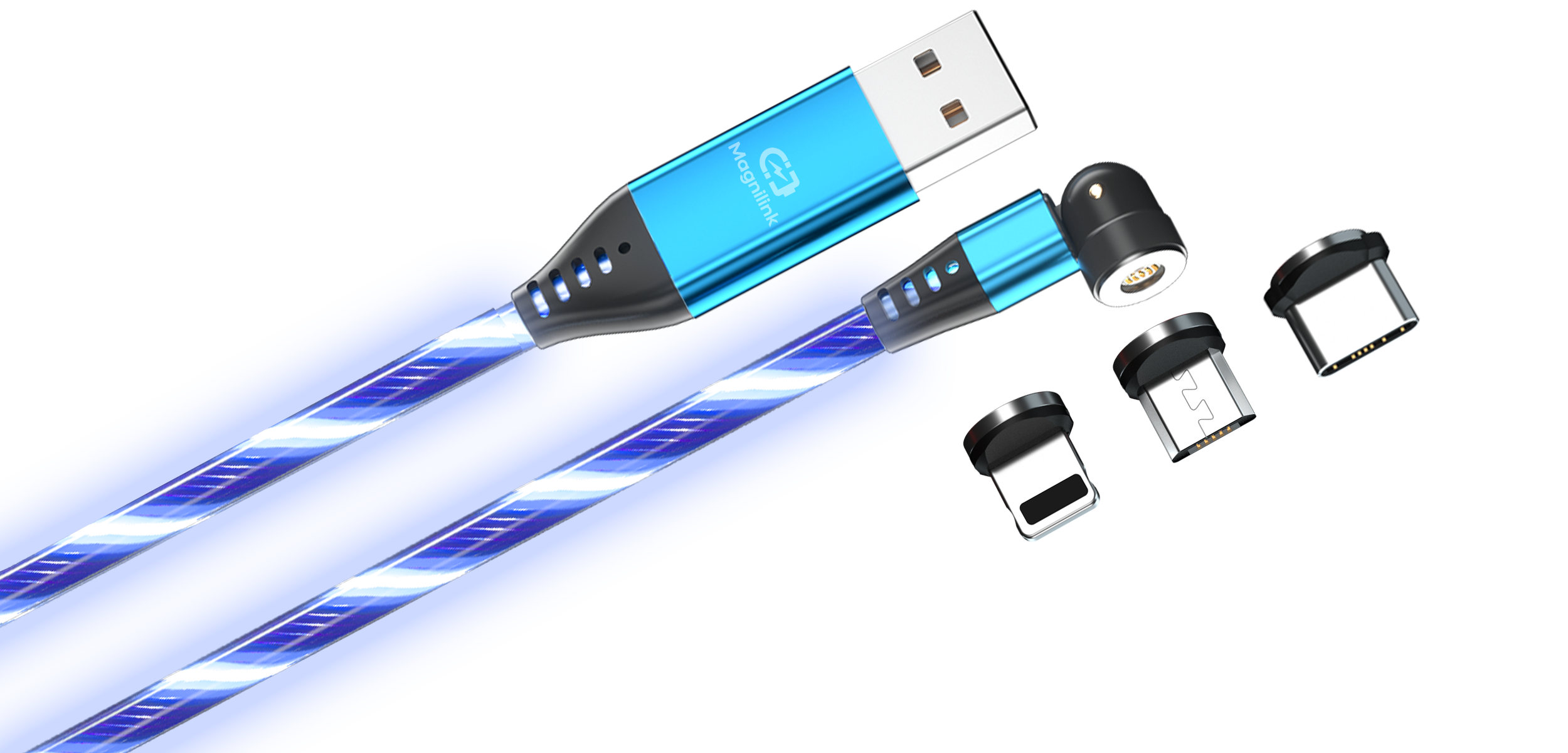 Light up your charging experience with the Magnilink 360 GLOW MAXX magnetic charging cable. Its animated luminous cable adds a touch of magic to fast 15W charging. With a 360-degree rotating head and three magnetic tips - Micro USB, Lightning, and Type-C, it's the bright choice for all your USB devices.