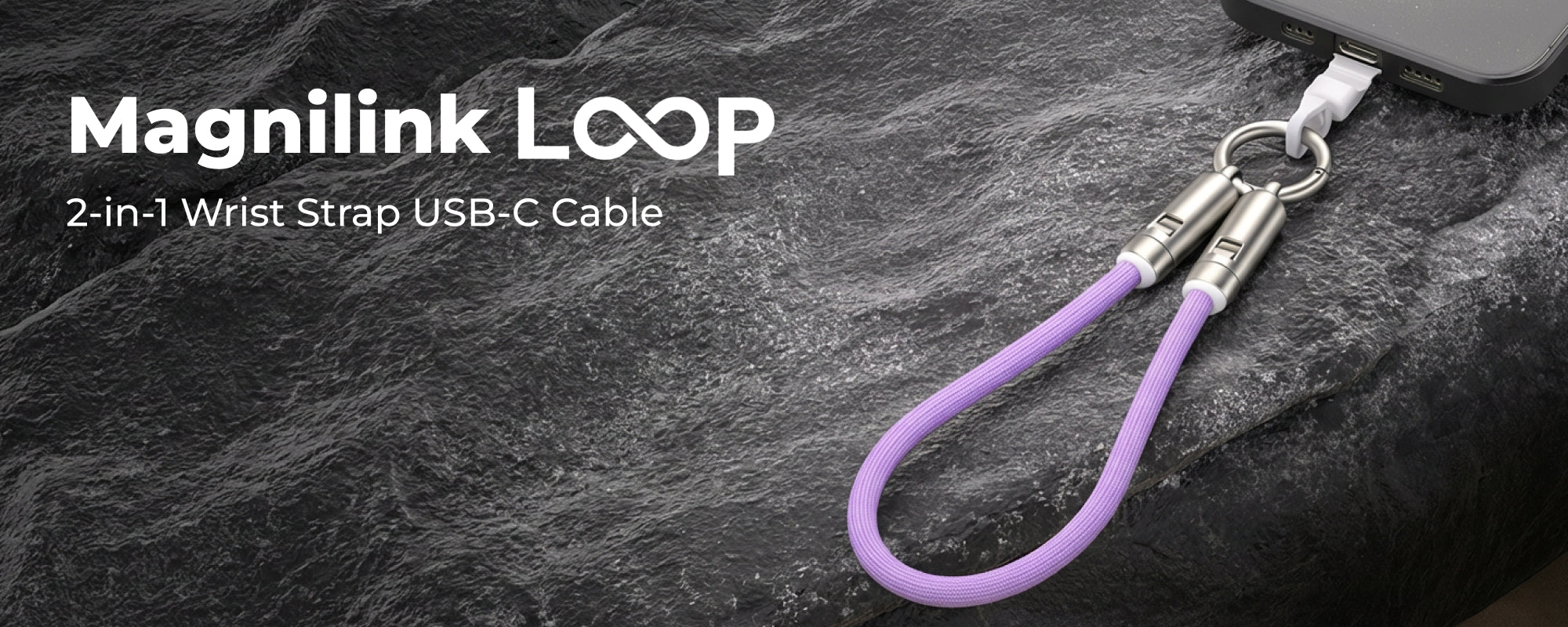 Meet the Magnilink LOOP Mini, the compact 2-in-1 wrist strap designed to keep your phone safe and your charging cable always within reach.