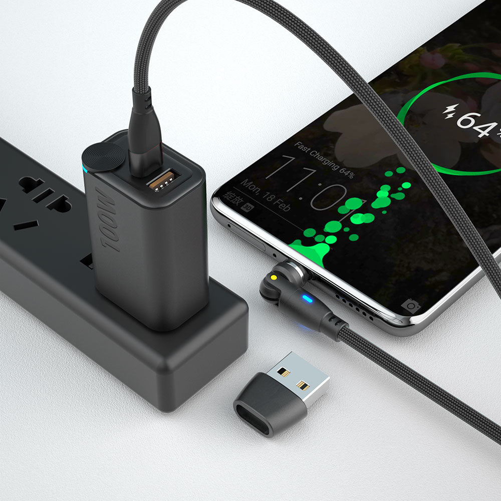 100W Magnetic Cable • 360° Head Design • Nylon Braided